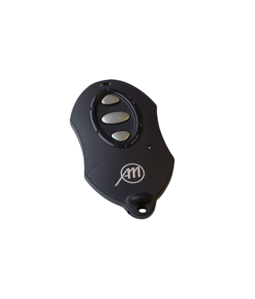 Comando emissor tricanal código variável (rolling code), na frequência de 433.92MHz.