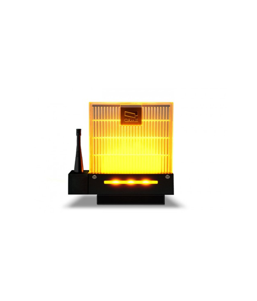 Sinalizador luminoso com base e suporte para fixação de parede. Iluminação LED cor âmbar. Sem antena. Também disponível em cor azul. Came.