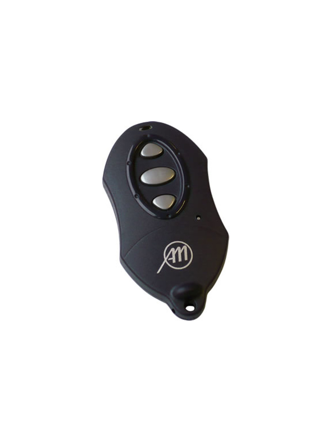 Comando emissor tricanal código variável (rolling code), na frequência de 433.92MHz.