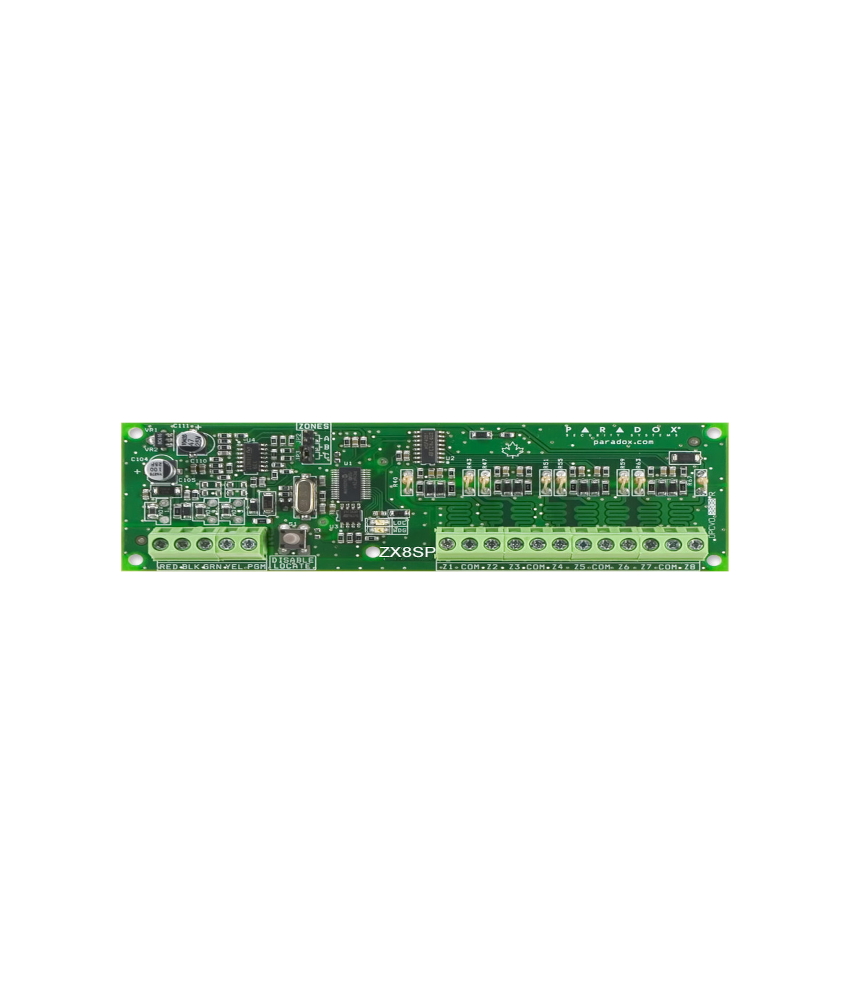Módulo expansor de 8 zonas + 1 saída PGM. Compatível com centrais SPECTRA e MG5000/MG5050.