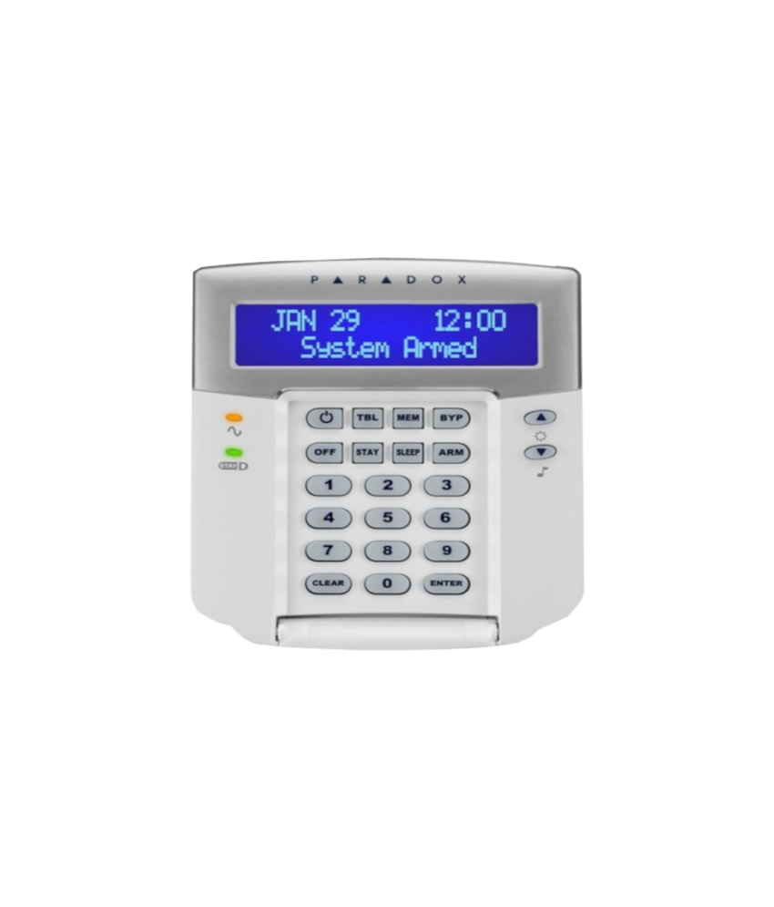 Teclado com display LCD alfanumérico. 1 entrada de zona e 1 saída PGM. Em Português.
