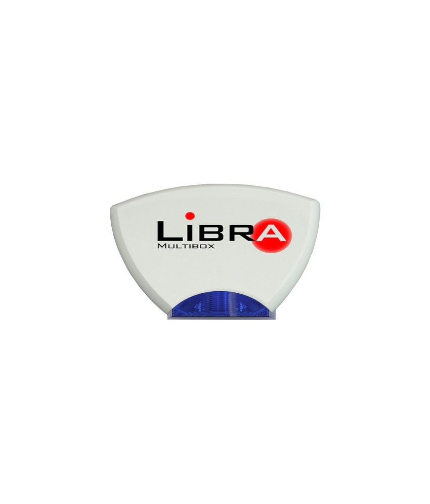Sirene exterior BCMB-BL-PLUS série multibox. 115dB. Grau 3. Base sirene azul tampa LIBRA em branco.